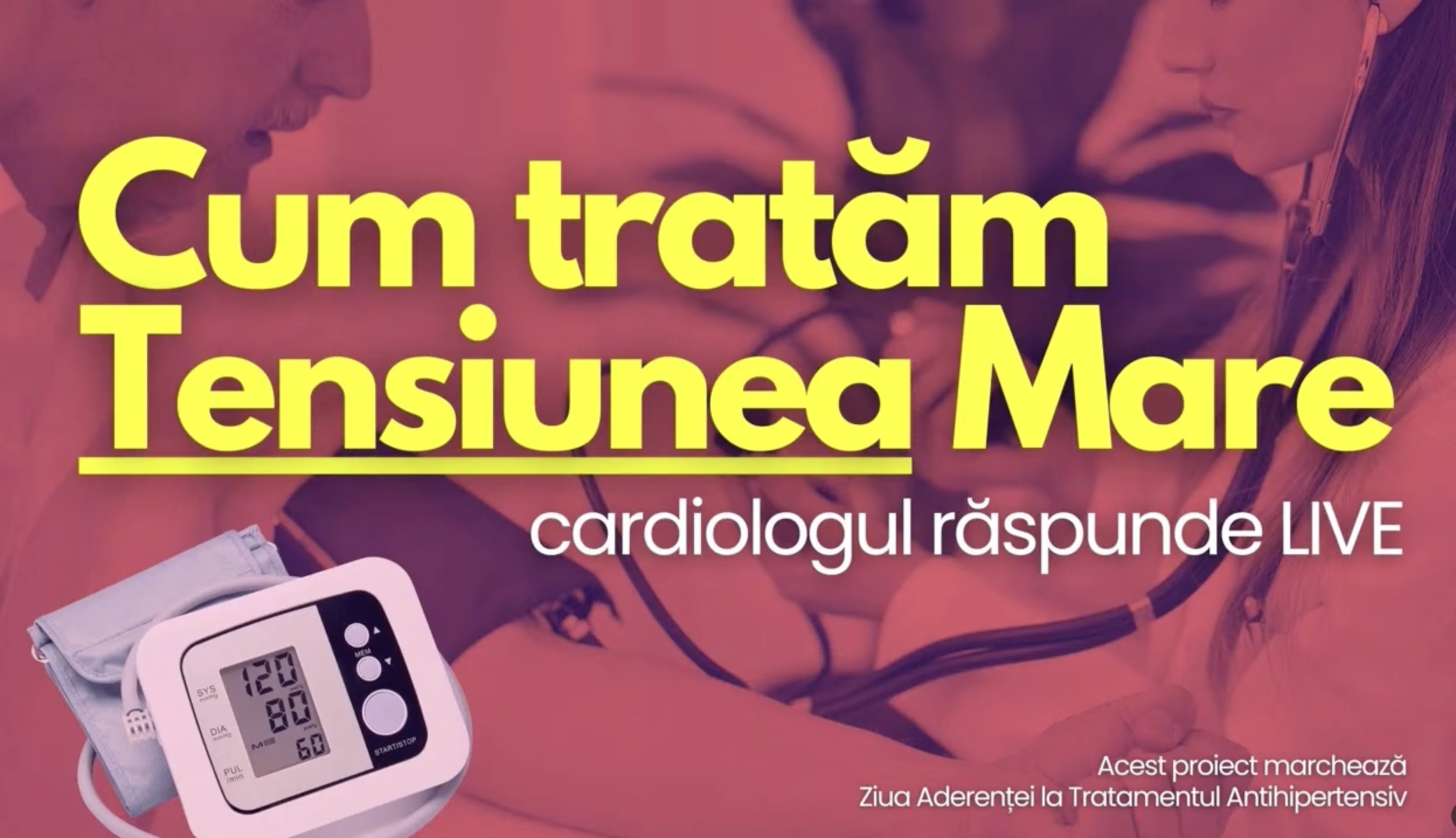 Anul acesta medicii cardiologi au marcat lupta împotriva hipertensiunii arteriale prin sfaturi concrete și dialog cu pacienții. Urmăriți evenimentul online – Hipertensiunea arterială: mituri periculoase și adevăruri – vitale” – și verificați cât de informați sunteți în vederea prevenirii efectelor severe ale acestei afecțiuni.
